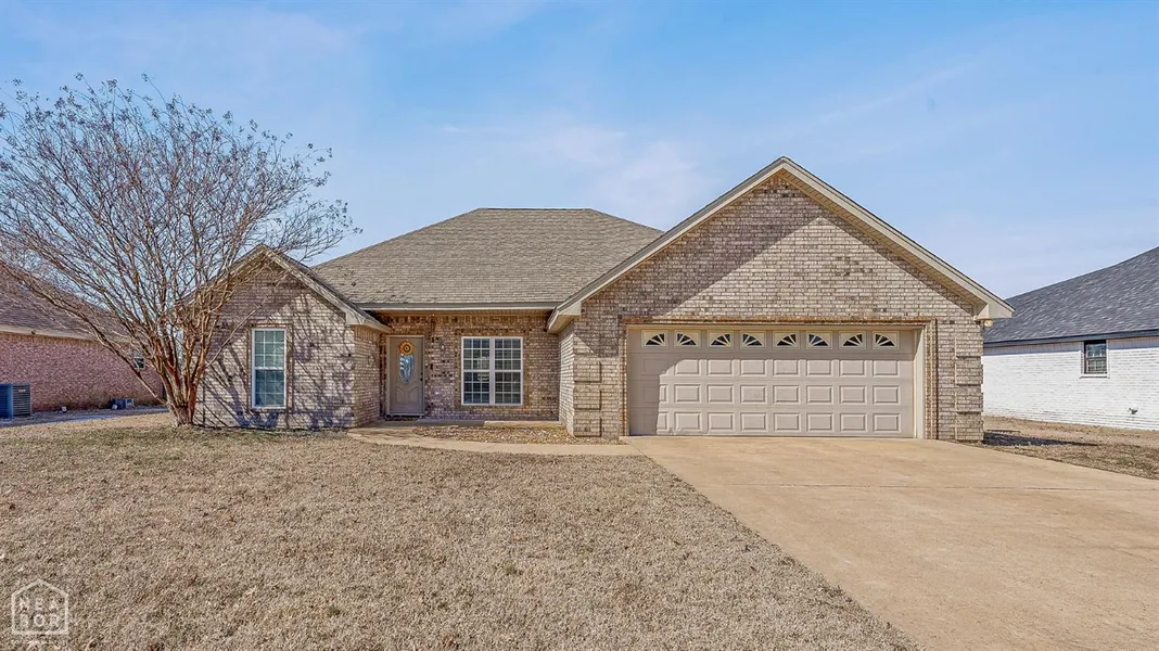 Nestled in a desirable neighborhood, this beautiful all-brick home features 3 bedrooms and 2 bathrooms across nearly 1,800 square feet of well-designed living space. As you enter, you'll be greeted by a spacious living room highlighted by beautiful tray ceilings and acid-stained floors throughout, creating a warm and inviting atmosphere. The living room flows effortlessly into the kitchen, where you'll find a breakfast bar, ideal for casual dining or entertaining. The master suite offers a peaceful retreat, with a generous layout and a master bath that includes a vanity with a designated space for a makeup area. The additional bedrooms are well-sized and provide ample space for family, guests, or a home office. Enjoy the outdoors year-round with a covered back patio, ideal for relaxing or hosting gatherings. The two-car garage adds convenience and storage, and with a new HVAC system installed in 2023, you can enjoy peace of mind knowing the home is equipped for comfort year-round. Don't miss the opportunity to see all this property has to offer, schedule your showing today!