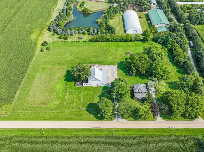 NEW PRICE! PICTURE PERFECT 5.4 ACRE FARMETTE WITH FARMHOUSE, BARN & SHED...ZONED A-1. FORMERLY A CHRISTMAS TREE FARM, THIS PROPERTY HAS NICE CURB APPEAL, is MOVE-IN READY and has GOOD BONES!! All Brick American Four Square offers 4 Bedrooms, 2 Baths, Full Unfinished Basement with 2-Car Detached Garage. Beveled lead glass windows and beautiful woodwork including bench seats, built-ins and book cases. Updated Kitchen, spacious Dining Room with bay window that is open to the Living Room and Family Room / Office with a brick, wood-burning fireplace. The 2nd Floor Features 4 Bedrooms (large enough for two twin beds), updated Bathroom and Built-in Pine cabinets in the hall. 3rd Floor is the unfinished attic space that has a full walk-up stair case - perfect for finishing into additional living space as a Master Suite, Office or Family Room. Enclosed Front Porch is the width of the house with western exposure - perfect for sunsets. The unfinished basement has tall ceilings for a house of this age (7.5 ft tall). The portion under the front porch acts as a bomb shelter, as all walls and ceiling are concrete. LARGE DAIRY BARN - Neat, clean and well maintained! Its approximately 40x50 with a tin roof and concrete floor. Spiral Staircase leads you to the 2-story hay loft. The LONG LEAN-TO portion along the south side measures approximately 15x85 and is a heatable space with an overhead garage door as well as 2 service doors. There is also a Half Bath in this portion of the barn. Great for a home-based business, storage or workshop. RUN IN SHED (12X30) could be used again for livestock or converted to a dog kennel (chain link fence already around it) or a Chicken Coop. Mature trees on the property including a LARGE Cottonwood and Walnut tree. This property is perfect for horses or other livestock...just add stalls and fencing! Two driveway entrances to the property. Keep the one for personal use and the other to the barn / outbuilding if you plan to run a business. Move-in Ready. Sells "As-Is".