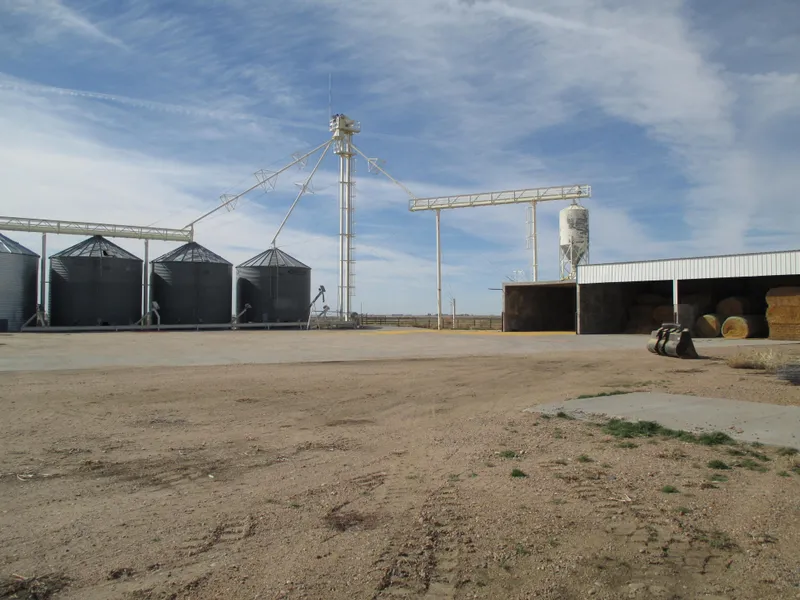 Public Auction. Contact United Country Stutzman Realty & Auction, Ulysses, KS. Tract #15 of 15. Offered individually and as a multi-parcel combination. This 618 acre tract includes the following improvements: 1,634 sf Home / Office building has been completely remodeled: 3 bedrooms, 2 bathrooms, partial unfinished basement and newer central HVAC. Other improvements consist of livestock pens, processing chute, 40,000 bushel grain storage (4 grain bins with leg and Hammer Mill), 90' x 30' commodity shed, 122' x 36' Butler Shop with concrete floor and cattle scales. Truck scales are not included. There are three wells, two electric irrigation motors and a 2001 Valley 17 Tower sprinkler with 38 tires.