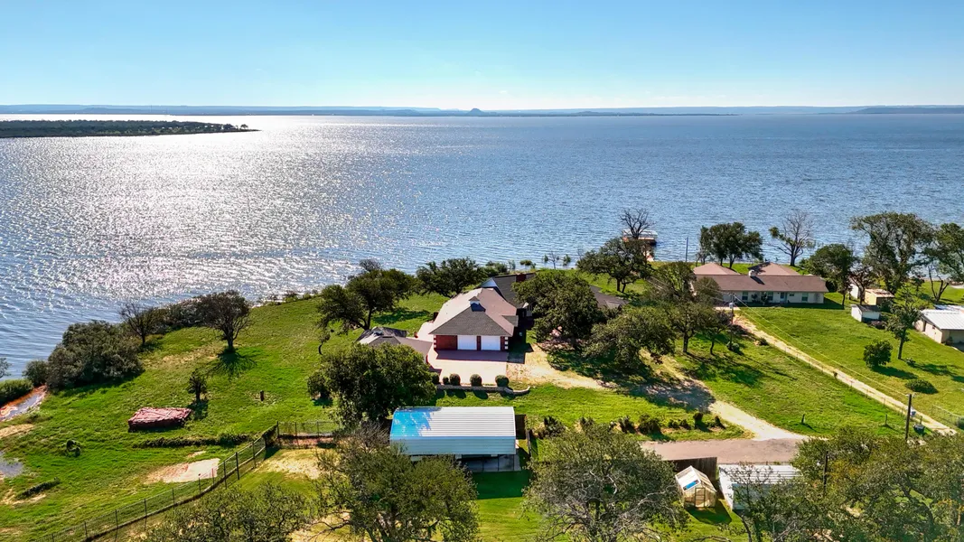 Experience lakeside luxury at its finest! This custom 3,907 sq. ft. home on the shores of Lake Buchanan offers breathtaking views, ultimate privacy, and unmatched elegance. Featuring 3 spacious bedrooms, 3 full baths, 1 half bath and high-end finishes throughout, this all-brick home is designed for comfort and style while at the lake. The expansive living room boasts soaring ceilings, a wall of windows with panoramic lake views, and a stunning stone fireplaceperfect for both relaxation and entertaining. The open-concept design connects the living room to the wet bar and a chefs kitchen. Custom cabinetry, top-of-the-line appliances, and a large island make this kitchen a culinary dream. Whether you're cooking for family or hosting a lakeside gathering, its an entertainers paradise. The master suite offers serene lake views and a luxurious, spa-inspired bath. A custom office with built-in desks and shelves provides a functional and stylish workspace. Convenience is key with a finished 2-car garage, golf cart bay, and a detached 2-car garage with a kitchenette and bathroomideal for a workshop, home gym and more. Set on 1.68 acres with 427 feet of pristine waterfront, this property ensures privacy with an end-of-road location and unobstructed views of Lake Buchanan. Not part of a subdivision, this property offers flexibility for future development. This isnt just a homeits a lakeside lifestyle. Experience peace, privacy, and luxury at its best.