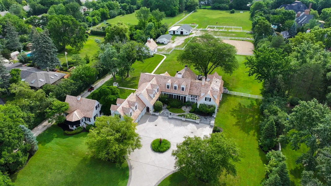 Much admired, iconic estate known as Saddle Hill Farm is set on 7.34 acres showcasing the main house, coach house and equestrian grounds. Privately set behind security gates, this striking property offers over 9,000 sq. ft. of extensive grand living space. The main residence has 6 bedrooms and 6 full and 1 half baths. Eat in chef's kitchen, a dramatic great room with custom woodwork, first floor office, spacious living and dining rooms. A reimagined first floor primary suite along with a 2nd first floor bedroom suite. The second floor is newer space completed by current owners boasting 4 bedrooms, 3 full baths and additional living areas. Finished lower level offers large rec room and full bath. Enjoy the serene views from the back terrace overlooking the stunning grounds. Additional features include a charming 2-bedroom coach house with full bath, kitchen, living room and sunroom; horse stables, fenced riding arena with lighting, tennis court, hot tub and walking paths. Exceptional construction with concrete reinforcements throughout. The property can also be subdivided if desired specific to Burr Ridge village guidelines. All Hinsdale Schools. Rare opportunity for this one of a kind property of incomparable magnitude.
