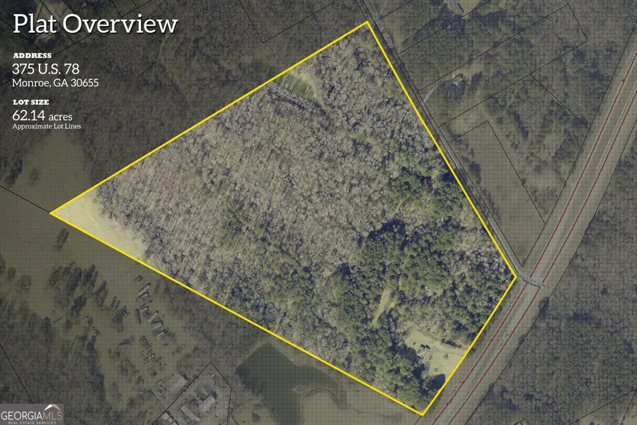 Discover an exceptional 62.14 acre land assemblage located at the corner of Highway 78 and Bradley Gin Road in Monroe, GA. This rare offering features a mix of cleared and wooded acreage with a combination of flat topography, gentle rolling areas, and a slight slope near the back left corner where a small creek runs along the rear of the property. With approximately 921 +/- ft of road frontage on Highway 78 and an additional 1,614+/- ft of frontage on Bradley Gin Road, this property offers outstanding visibility and accessibility. There are two existing driveways from Highway 78 and two additional driveways off Bradley Gin Road, giving multiple access points for future development. The assemblage consists of two parcels, one currently zoned R-1 and the other zoned AG. The property also falls under Monroe's Future Land Use designation of Highway Corridor, supporting a variety of commercial and higher-intensity potential uses. A small, inhabitable house is located on one of the parcels along with a chicken coop at the back of the property, and there are also two wells on site. This Monroe land tract is ideally positioned for developers, investors, and buyers seeking high-exposure acreage along a major corridor. GDOT reports an average traffic count of approximately 20,100 cars per day along Highway 78, offering exceptional visibility for commercial or retail-related projects. With its combination of road frontage, access points, natural features, flexible zoning, and prime location, this property presents a rare opportunity for those searching for development land in Monroe, Highway 78 commercial acreage, or large parcels in Walton County.