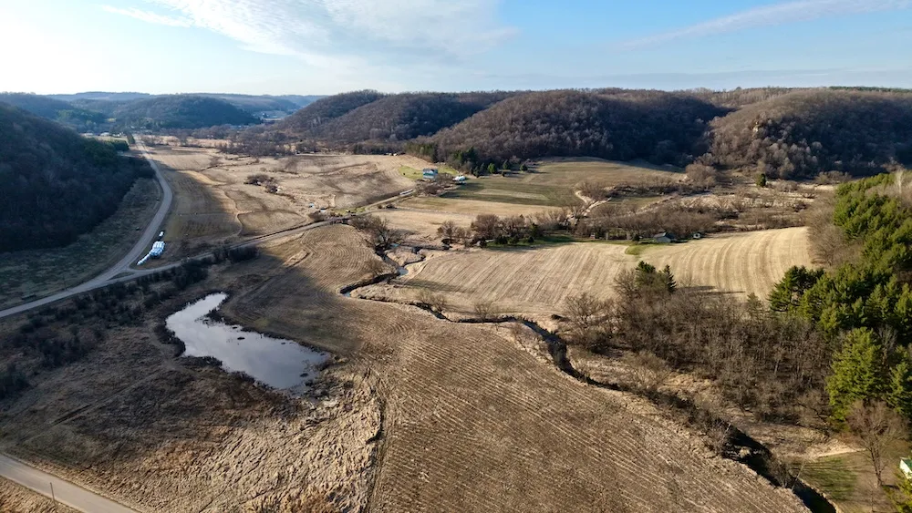 If you’ve been looking to escape into the country to take advantage of the beauty and recreation the Driftless Area is known for, then this is a MUST SEE new listing! The 2 bedroom, 1 bathroom cabin is the perfect place to stay while you’re out for the weekend. There are approximately 750 square feet of living space ready for you to use. If you need some additional space for guests, there is a bunk-house disconnected from the main cabin providing extra sleeping space. This would also make for a great office, workshop, or man-cave to spend time in. Outside the cabin, you will find some of the real beauty this property has to offer. This property boasts THREE different trout streams for you to fish and enjoy. You will have your pick as to whether you want to fish Mill Creek, Babb Hollow Creek, or Hood Hollow Creek depending on the day. All three streams are classified as Class II streams offering you excellent trout fishing. Another water feature on this property is the wetland scrape. Approximately 1 acre in size, this scrape offers a water source for wildlife and attracts waterfowl for additional hunting, bird watching, and photography opportunities. There is also some great deer and turkey hunting on this property. The 14 acres +/- of hay fields are being rented out to a local farmer and act as a great attraction for wildlife. These could continue to be hay, or they could be converted to row crops, native grasses, or food plots for wildlife. The remaining open ground is enrolled in both CRP and CREP. There are 5 acres of CRP with an annual payment of $750 which is up for re-enrollment in 2025. 4.4 acres are enrolled in CREP with an annual payment of $630 and runs through 2033. If you are interested in taking a look at this one-of-a-kind property, give me a call to schedule your private showing!