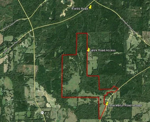 620+/- acres of deer and turkey paradise west of Utica with double road access off Ernie Martin Road from the east and Fields Road from the north.
