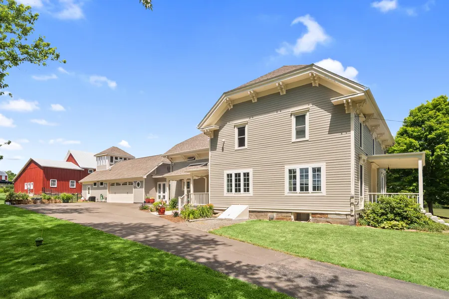 A true storybook setting! Locally known as Toad Hill Farm, this meticulously maintained estate boasts a circa 1865 center-hall colonial situated to enjoy the Sunrise valley view featuring elegant period details throughout this gracious 5 plus bedroom 2 1/2 bath home. From the original oak trim on the doors and windows to the wide plank pine floors all harvested from this idyllic property. The gracious floor plan offers ample entertaining opportunities from the updated kitchen to the large dining and adjoining Living room which gives way to the front original stairs leading to the second floor where you'll find 5 large bedrooms including the tranquil master suit with updated bath and a relaxing private balcony, which is over the heated sun room on the main floor. The attached oversized 3 car garage includes in-floor heating and a unique and convenient drive through design and a workshop with a bird watch tower. The original Red Carriage Barn with stalls and paddocks are ideal for horses, storage or country shop. Older cattle barn and a spacious 72 x 42 free span pole barn round out the buildings nestled on the nearly 100 acres of open fields and woods with two ponds, a stream and (20 year old) walnut grove. If you are seeking a refined country estate for horse, cattle, or seasonal home located in the Finger like region of NY less than 10 miles from Cornell University, this is a must see.