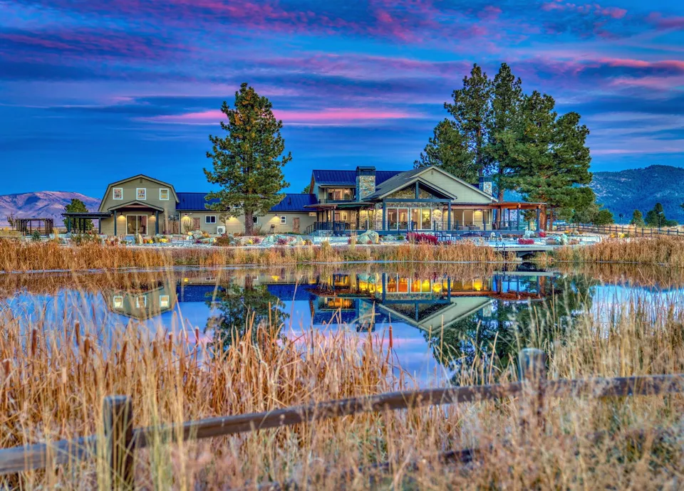 Set on over 158 acres in the prestigious Sierra Valley, Forsythe Ranch combines wide-open landscapes with a modern farmhouse residence and top-of-the-line amenities. The property offers the chance to experience ranch life with the comfort of modern luxuries, all in a private and well-planned setting. The main home spans more than 5,200 square feet and features an open floor plan with vaulted ceilings, exposed trusses, and a stone fireplace at the heart of the great room. The chef's kitchen is outfitted with Wolf and Sub-Zero appliances, custom cabinetry, quartzite counters, and a walk-in pantry. In addition to three bedrooms, the home includes his-and-hers offices, 5.5 baths, a gym, laundry room, and an expansive wraparound deck with a fully covered outdoor kitchen and dining area. The primary suite is a private retreat, with dual baths and closets, heated floors, a soaking tub, oversized shower, and smart mirror technology.