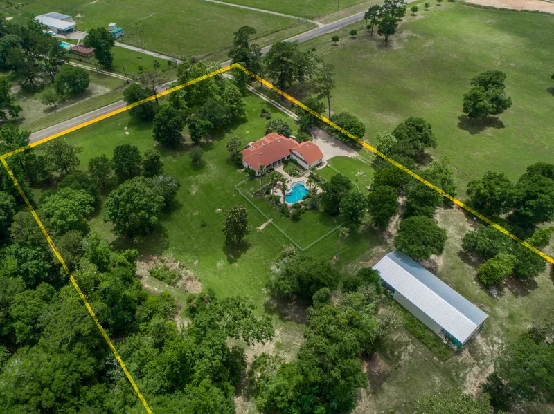 Must see this beautiful unrestricted property nestled on 8.61 acres with easy access to US 59! This masterpiece features custom cabinetry, crown molding, 2 stone fireplaces, granite counter tops, and 12' vaulted ceilings! Home features open concept living as well as a split floor plan. Almost every room offers stunning views of the property and allows for copious amount of natural light! The master suite and its adjoining living area offer private access to the covered back patio. All rooms are large and bright. There is ample counter top, cabinet, and closet space for all of your storage needs. Exterior features include a 3 car attached garage, a fully fenced back yard oasis with gorgeous lush landscaping as well as an in ground swimming pool with waterfall and lagoon! Property also boasts a massive workshop at the rear of the property with 3 bay doors that is perfect for additional storage or to host outdoor gatherings! This rare gem won't last long! Schedule your showing today!