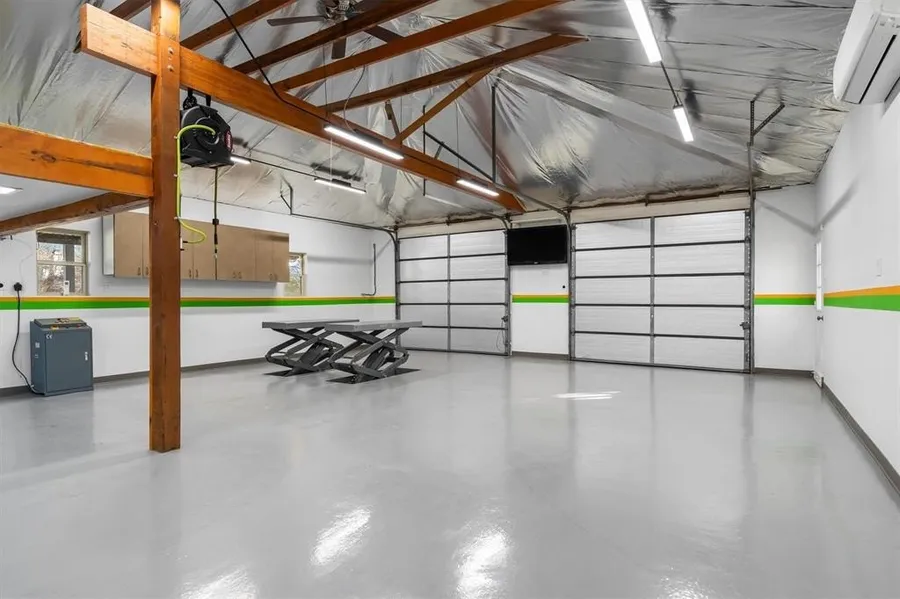 Set on a tree-filled one-acre lot in Double Oak, this single-story residence blends space, function and outdoor living. The reimagined floor plan includes three bedrooms, two baths and a dedicated office with oversized rooms throughout. Hardwood floors and large windows connect open living areas to a private backyard with pool, patio and pool house currently used as a fitness studio. A 1,200 sq ft climate-controlled shop with lift and compressor (available for purchase) plus covered boat and RV parking provide exceptional utility. Private well irrigates the yard while city water serves the home. Low water bills! Septic system. Quiet cul-de-sac street near Marty B's, the Shops of Highland Village, Bartonville Store and Jeter's Meat Market, easy commute to 1171, 407, both I35E and I35W. This property offers a rare blend of acreage, workshop and pool in desirable Double Oak. 1-acre treed lot. Pool. Pool house. 2 sheds. 1,200 sq ft shop with HVAC. 5 car garage. RV parking. Boat parking.