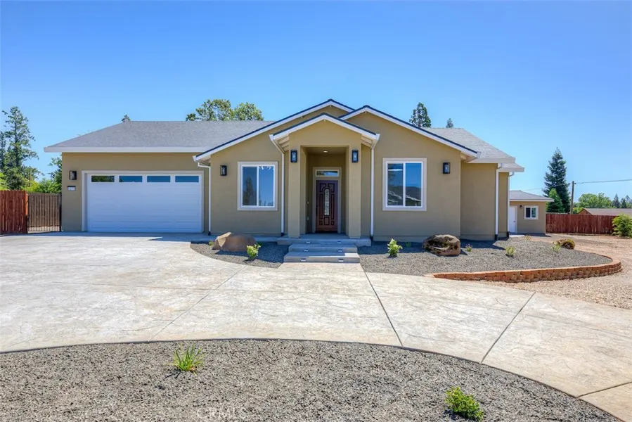 Welcome to 6210 Himmel Street a brand new 2025 custom-built home blending thoughtful design, elegant finishes, and everyday comfort in the heart of Paradise. This stunning single-story residence offers 3 bedrooms, 2 bathrooms, and 1,710 square feet of bright, open living space a perfect mix of style and function. From the moment you arrive, a circular driveway and stamped concrete enhance curb appeal and sophistication. The low-maintenance landscaping includes a timed sprinkler system, providing a lush, green setting with ease. Inside, the open-concept layout balances privacy and connection. A separate living room offers a quiet retreat, while the family room and kitchen serve as the home s social hub. The kitchen shines with quartz countertops, upgraded fixtures, and rich alder wood cabinetry adding warmth and timeless charm. Engineered hardwood flooring flows throughout, reflecting the seller s investment in quality and style. Comfort is key in every room, with upgraded ceiling fans in all bedrooms for year-round efficiency. Storage is abundant with a custom hallway closet featuring built-in shelving and integrated lighting ideal for pantry items or linens and matching alder cabinetry on the opposite hallway enhances both space and design. Premium finishes include modern lighting, designer faucets, and upscale hardware. The layout places two spacious bedrooms and a full bathroom on one side, alongside a discreet laundry area tucked behind a door for sound and visual separation. The primary suite offers a tranquil, private retreat, conveniently near the custom storage. Step outside to a private covered patio with built-in lighting perfect for relaxing evenings or weekend barbecues. The fully fenced yard offers security and serenity, with stamped concrete extending to the backyard for a polished, cohesive look. Also includes a 120 sq. ft. detached shed with power provides versatile space for a workshop, studio, or office. Parking is generous, with ample space on both sides ideal for RVs, boats, trailers, or multiple vehicles. Newly planted Sequoia redwoods along the fence promise future shade, privacy, and a serene natural backdrop. Every detail supports an elevated lifestyle, blending comfort, elegance, and practicality. Whether enjoying quiet nights or hosting friends and family, this turnkey home adapts beautifully to your needs. More than a home, a high-quality living experience in one of Paradise s most sought-after neighborhoods. *Virtually staged.