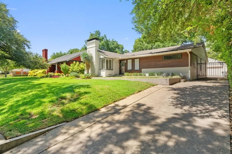 Set on one of the most sought-after, tree lined streets in East Dallas, this rare Mid-century Modern residence blends timeless design with thoughtful updates for a one of a kind living experience. Surrounded by majestic oaks and low maintenance landscaping, the curb appeal sets the stage for the tranquil retreat inside. Step through the glass front entry to bright, open living spaces framed by walls of windows that fill the home with natural light. Gleaming hardwood floors extend throughout, while the spacious living room is anchored by a striking fireplace with custom tile surround. The primary suite offers a spa inspired bath with dual vanities, glass enclosed shower, soaking tub, and a custom walk-in closet. Additional bedrooms are generously sized and versatile, while a sunlit flex space provides the perfect setting for a home office or studio. Outdoors, multiple seating and dining areas create an inviting environment for both entertaining and relaxation. The backyard, shaded by mature trees, provides a private setting with plenty of room to enjoy the outdoors. A two-car garage offers both parking and abundant storage. This exceptional location provides easy access to White Rock Lake, the Dallas Arboretum, Santa Fe Trail, and the shopping and dining destinations of Lakewood, Lower Greenville, and Deep Ellum