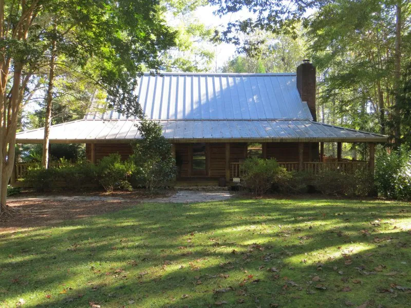Has a absolute beautiful and unique lodge overlooking the 32-acre lake. It consist of 4 bedrooms and 4.5 baths. It comes furnished except for personal items like the mounts. It has underground power and a generator to run the the whole cabin if the power goes out. It has heart pine floors throughout and a wine cellar in the basement