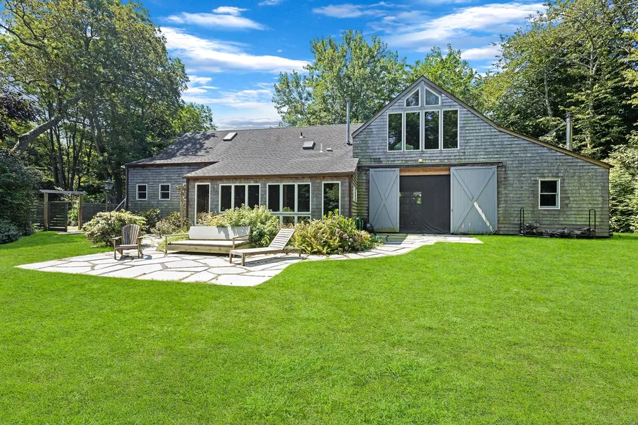 Southold Circa 1910 Converted Barn. This is your opportunity to own a truly special property on the North Fork. Set on 1.5 secluded acres. Brilliantly renovated combining original rustic barn details with modern amenities. Original exposed wood beams, and steel trusses, barn doors, wide plank floors, and vaulted ceilings. Designed to allow Indoor and outdoor spaces to flow seamlessly. Gunite pool and pool house/studio. A magical home and setting just 2 blocks to Hortons Pt. Lighthouse and beach.