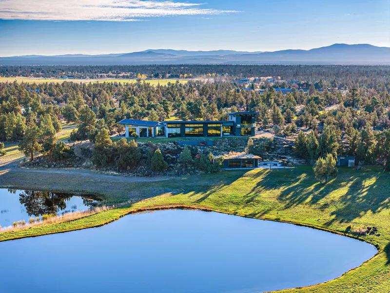 Careful site planning and years of observation are reflected at every corner of this sophisticated property. The home overlooks lush pastures and ponds with the full Cascade Mountain range front and center. An abundance of windows brings daylight deep into the home, creating a calming connection to nature. The property maintains impressive solar capabilities and state-of-the art technology. Curated accommodations include a pool house, cantina, pavilion with firepit & pizza oven, swimming pool, indoor & outdoor showers w/ lavatories, first-class greenhouse, 2100sf garage, shooting range, caretaker quarters, and more. 3 off-grid guest pods are perched atop ancient bedrock with unobstructed mountain views. Car enthusiasts will appreciate the 9000sf shop with additional storage rooms. The property is bordered by BLM on 2 sides, fostering additional peace and privacy. 20 irrigated acres and all-organic farming practices. Exceptional and genuine; in a league of its own.