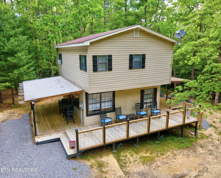 Discover the perfect blend of comfort and nature at this beautifully furnished home in the tranquil Top of the World community. 6228 Bear Rd offers a unique opportunity as a turn-key Airbnb investment or as a private getaway. This charming property features a delightful wrap-around porch where you can enjoy the soothing sounds of nature and gentle breezes. The home's design includes a special second-floor bedroom dubbed the ''treehouse,'' providing an enchanting sleeping experience that feels both cozy and adventurous. The outdoor space is equally inviting, with a dedicated fire pit and hammock area designed for relaxation and stargazing on clear mountain nights. Quiet and serene, this home is not just a place to stay—it's a retreat. Currently operated as a successful Airbnb, it comes fully furnished, allowing you to seamlessly continue its rental potential or move right in. Conveniently located 30 miles from the Knoxville airport, 20 miles to the city of Maryville or 20 miles from Townsend; the Gateway to The Smoky Mountains. Strategically located near Sandy Stand Lake and available for joint purchase with the lakefront property at 6163 Sandy Stand Rd, this home extends the possibility to own a comprehensive lifestyle package. Whether you're seeking a peaceful residence or a profitable hospitality venture, 6228 Bear Road is your gateway to a tranquil lifestyle immersed in the beauty of the Smoky Mountains.