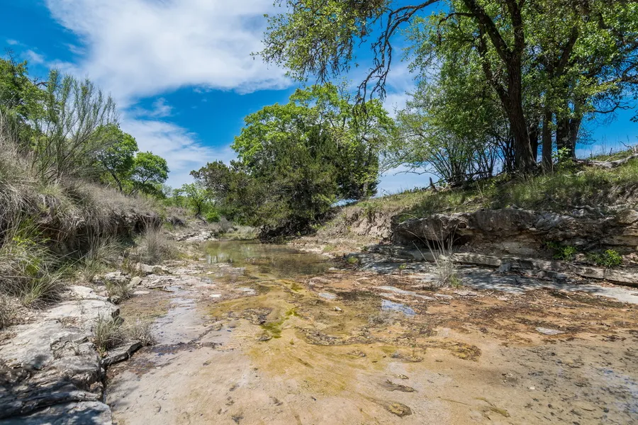 There are several drainages on the ranch and one unnamed creek that runs South to North thru the property. Currently flowing on the South and North end, with possible lake locations being present. Ranch has been cleared of most of the cedar and this has allowed for the Live Oaks, Post Oaks Cedar Elms, Pecan & various other native trees to flourish as well as the grass cover. There is also a live Spring located on the western part of the ranch that may lend to additional water development. Three stock tanks are located on the property. One water well with submersible pump services the house. Electricity located on numerous areas throughout the ranch with a meter at the house.