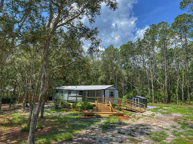Country home in Old Town, where convenience meets comfort in this beautifully remodeled 2-bedroom, 2-bathroom manufactured home. Nestled in a serene community, this residence boasts thoughtful upgrades and accessibility features, including a convenient handicap ramp and a versatile shed for additional storage. Upon entering, you are greeted by an inviting open floor plan that seamlessly connects the living, dining, and kitchen areas. The kitchen featuring sleek countertops, ample cabinetry for storage, and a suite of stainless-steel appliances that elevate the cooking experience. Both bedrooms have access to full bathrooms that has been tastefully updated with contemporary finishes. Outside, the property continues to impress with its low-maintenance landscaping and a covered front deck area perfect for enjoying your morning coffee. Conveniently situated near the Suwannee River, many springs, and Hwy 19, this home provides easy access to your shopping, dining, entertainment and transportation options.