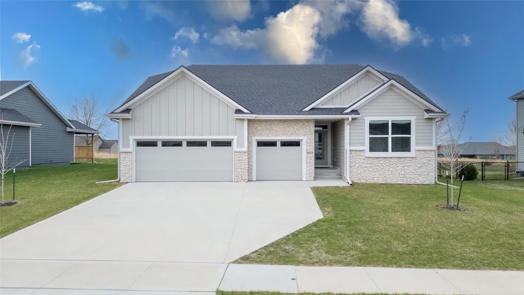 Welcome to 623 NE 55th St in Ankeny! This charming 3-bedroom, 2-bath ranch home offers 1,767 sq ft of thoughtfully designed living space on a spacious 0.30-acre lot. Built in 2020 and located in a fantastic newer Ankeny neighborhood, this home features a cozy gas fireplace in the living room-perfect for relaxing evenings. The open floor plan connects the living area to a stylish kitchen with all appliances included-refrigerator, microwave, washer/dryer-and a mounted TV in the living room for added convenience. Enjoy the benefits of an energy-efficient gas forced-air heating with central air. The large, attached 3-car garage provides plenty of storage, and the home's quiet, yet convenient location offers quick access to schools, parks, and shopping. This move-in ready gem combines modern comfort with great value in one of Ankeny's most sought-after neighborhoods. Don't miss your chance to call this beautiful property home!