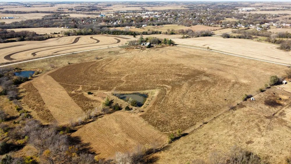 Sitting right on the southeast corner of Pawnee City, Nebraska city limits, this 40 +/- acre farm and home is in the perfect location for an acreage or farm close to amenities and the future growth path of the town. The farm is zoned agricultural with roughly 27 +/- dryland acres currently in hay production and the remaining acres in fenced pasture. The tillable acres are cleanly terraced and mostly Wymore and Pawnee Class III soils. Two established ponds on the property provide water for livestock and both hold a few species of fish for recreation. The farm borders both 623 Avenue and 709 Road giving easy access to both. A small amount of timber lies along the southern border of the property and connects the farm to the adjacent seasonal creek bottom where a lot of wildlife live and frequently travel through.