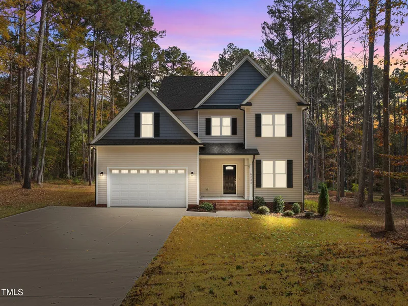 This move-in-ready, USDA-eligible home has everything you need—washer, dryer, fridge, and blinds are all included! With no HOA or restrictions and situated in the desirable Wake County Schools district, this property is only two years young and has been well-maintained as a rental. The first floor showcases luxury hardwood-style flooring and elegant cove crown molding. The kitchen is a chef's delight with granite countertops, recessed lighting, decorative tile backsplash, custom-painted cabinets with crown trim and modern brushed nickel pulls, built-in pantry cabinet, and stainless steel appliances. A center island with a breakfast bar creates a welcoming space, open to a spacious dining area that features a slider door to the rear deck—perfect for seamless indoor-outdoor entertaining. The owner's suite is designed with comfort in mind, boasting vaulted ceilings, plush carpeting, a ceiling fan, and dual closets. The attached bath features tile floors, cove crown molding, a dual vanity with cultured marble countertops and brushed nickel faucets, decorative framed mirrors, and matching light fixtures. A tile surround shower, soaking tub, and a separate water closet with a window add both style and convenience. The family room is warm and inviting, complete with a custom surround gas log fireplace, a painted mantel, two double windows for natural light, and a brushed nickel ceiling fan. A 2nd floor huge bonus room with recessed lighting and a ceiling fan offers versatile space for a media room, office, or play area. A versatile room at the front of the home, featuring cove crown molding, a modern hanging light and a double window, can serve as a formal dining area or a home office. Make an appointment to see this lovely home today!