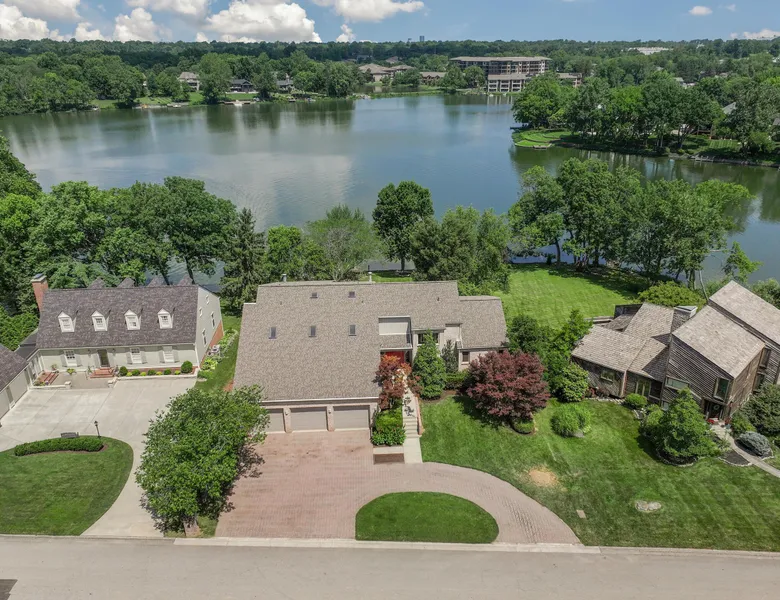 An exceptional lakeside retreat in one of Lexington's most sought-after gated communities, The Island-known for its architectural diversity and tranquil surroundings. This spacious home with over 5,000 sq ft blends contemporary design with an unbeatable lakeside setting, creating a private oasis unlike any other. Step inside to find a two-story foyer and a smart layout that offers two generous living spaces, ideal for both everyday living and entertaining. The main level features a first-floor primary suite, a roomy sunroom with serene views, and an expansive deck overlooking the water. The fully finished walkout basement includes a second kitchen, making it a perfect setup for multi-generational living or in-law accommodations. Play year round basketball in 3 car garages with soaring ceiling and basketball goal. Outside is where this home truly shines. Enjoy lake views from nearly every level, a screened-in patio, and multiple outdoor living spaces including a lower-level deck and paver patio that flow seamlessly to a beautifully landscaped backyard. Mature trees provide privacy and shade, while a private dock offers direct access to the water-perfect for kayaking, fishing,. or just relaxing. With 2 fireplaces, front/back staircase, steam shower, murphy door leading to loft, 3 bedrooms, 4 full baths, 2 half baths, and a 3-car garage, there's room to grow and space to breathe. Additional storage garage in lower level. This is a rare opportunity to enjoy peaceful, lakefront living in one of Lexington's most distinctive neighborhoods.
