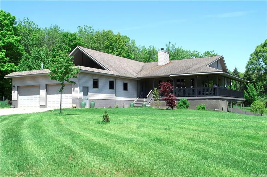 **BIG PRICE REDUCTION** Seller motivated! Jewel in the woods. Secluded country executive home refreshed in 2018 that sits behind ten acres of land that gives you and your family all Kinds of privacy. Six bedrooms with master suite and 11 by 12 walk in closet features immaculate interior and park like setting outside. Your own private orchard with peach, pear, plum and apple trees, with private pond complete the unique Michigan up north feeling in wonderful Goodrich. First floor features beautiful kitchen and dining room, great room with magnificent stone fireplace and cathedral ceiling. Three kid rooms or two and a comfortable den on the main floor and master suite. Second floor features his and her office area with private loft over the master suite. Basement features 2500 square feet of adult area with two large bedrooms, exercise and TV area with full downstairs bathroom. Unique indoor dog running area with fenced area and four car garage complete that unique Michigan living.