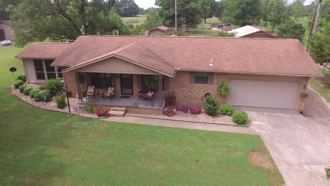 Beautiful country charmer ready for your hobby farm! This 3 bed 2 bath, 1712 sft +/- brick home sits on 5.26 acres +/- in a gorgeous country location less than 6 miles from shopping, schools and medical services. Cozy den with 2+/- year old insulated windows and custom blinds. Lots of updates including: Heat pump 4+/- years old, water heater 3+/- years old, 30 year architectural shingle roof 10+/- years old, appliances 3+/- years old, breaker box <1 year old, overhead garage door motor 1+/- year old, kitchen and baths remodeled with granite counter tops, new vanities in both bathrooms, new back-splash in kitchen, lots of fresh paint throughout home, tile floors in wet areas, spacious laundry room, additional living room, wood burning fireplace insert, 330 gallon propane tank for backup heaters, large, drive-through shop with power, block storage shed, stocked pond, fenced and cross fenced with access gates, pecan trees, muscadine grape vines, hand dug well and chicken coop included! This won't last long, call for your showing today!