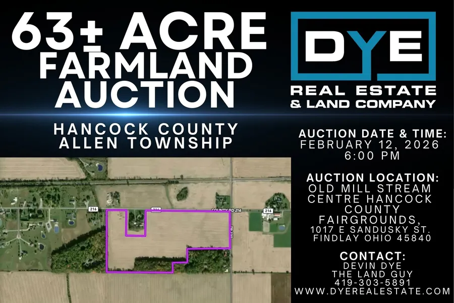 This 63-acre land auction near Findlay, Ohio, presents an excellent investment opportunity, particularly for agricultural purposes. The property features high-quality soils, with approximately 50% being Pewamo soil and 50% Blount soil, making it highly productive. About 90% of the land is tillable, and it was systematically tiled in 2012 to enhance drainage and productivity. Additionally, its strategic location just east of I-75 and close to major distribution centers like Ball Metal, Whirlpool, and Lowe’s further underscores its potential for future development. Overall, this property combines agricultural viability with possible development prospects, making it a valuable asset.
