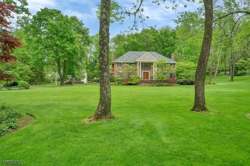 This gracious Georgian colonial is nestled on 3+acres in New Vernon. There are 4 bedrooms and 3 full baths on the 2nd fl. There is a first floor bedroom/office with a full bath, private entrance and deck. The family room and living room each have wood burning fireplaces. The dining room has french doors that flow to the rear outside space. The deck, pergola, and patio with a fountain offer additional living space to relax and enjoy the beautifully manicured flowering gardens and sprawling lawn. The eat in kitchen has high end gourmet appliances, 2 farm sinks, a center island, granite counters, a wet bar and pantry. The first fl laundry/mudroom is next to the attached heated 3 car garage. The lower level is finished. Amazing 2 story barn. Full house generator. Private quiet driveway. Waiting to be Home!