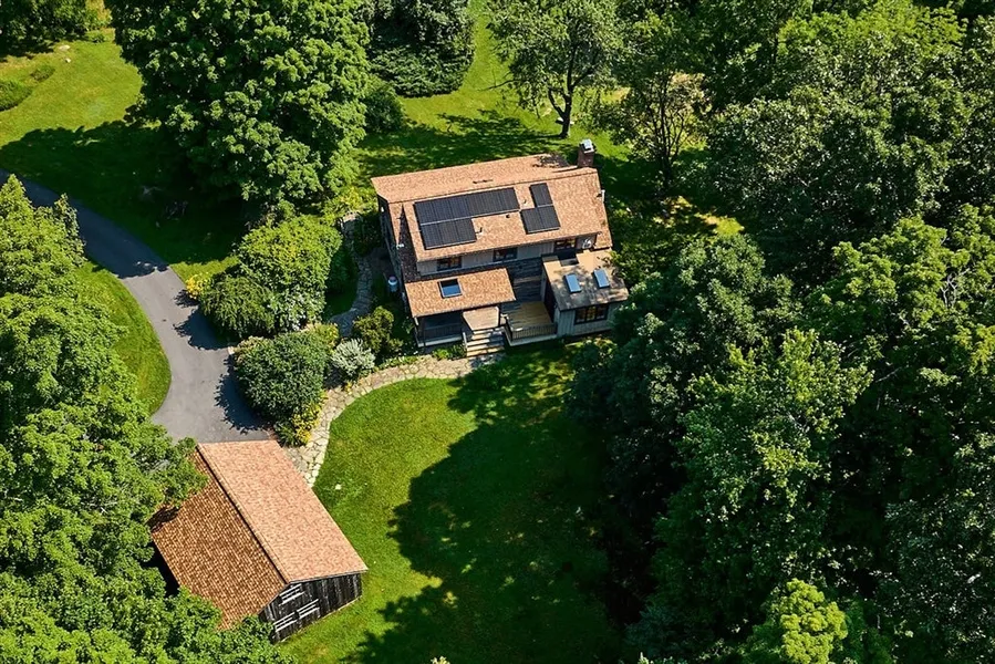 This log home w/ rustic exterior charm covered front & back porches & deck offers an idyllic blend of comfort w/ beautifully updated interior by Amherst architect, Alan Eccleston. Sited for ultimate privacy & tranquility on 4.85 acres of open space, woods & meadows far from any traffic, (horse lovers take note!) w/ stone walls meandering along the boundaries, is a nature lover’s paradise! Be captivated by the warm inviting interior w/ exposed beams, wide wood plank flooring, custom built wood cabinetry & built-ins. Kitchen & dining area boasts open concept. Enjoy the coziness of a crackling fire in the LR fieldstone fireplace while the skylights on a wide central staircase provides beautiful ambient light. Work from home w/ town fiber optics in a sun filled office w/ private entrance. Lg. 2 bay garage w/ storage above. Nestled at foothills of Brushy Mt & a protected conservation working forest w/ public access for outdoor recreational activities, yet only 7 miles to Amherst Center.
