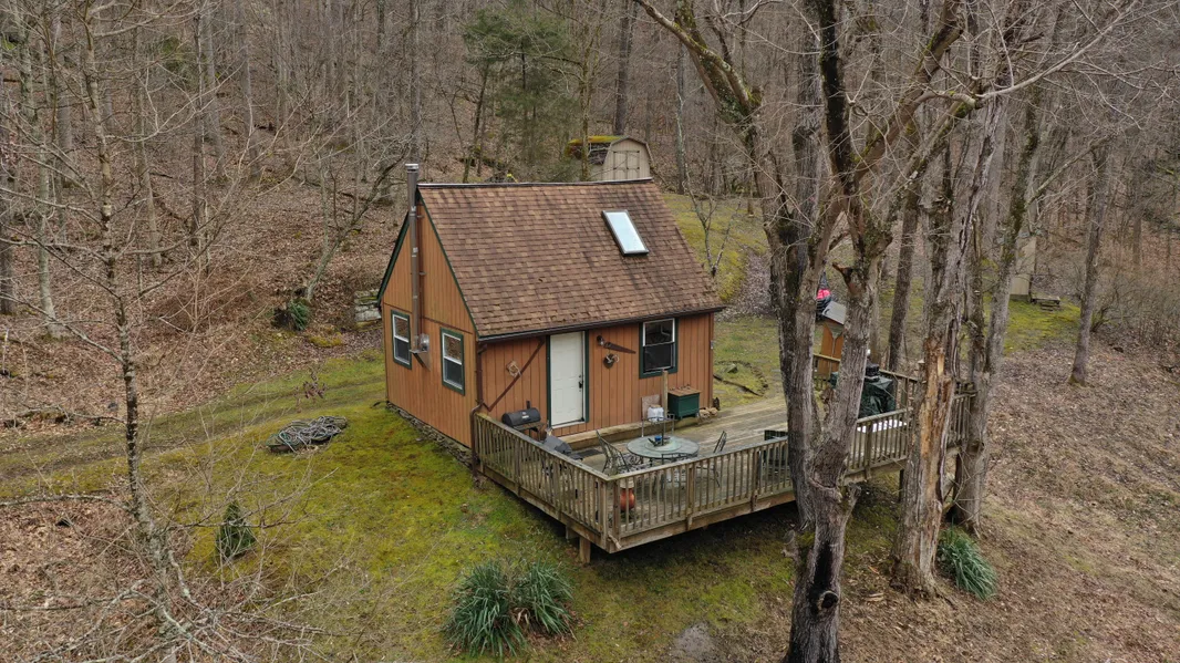 Private cabin overlooking a stream. This primitive cabin is wired for a generator and has an indoor bath but no septic system yet. There is a large deck that overlooks a small bottom and a stream. There is also a nice spot beside the cabin for a pond. Hunting is fabulous and fishing is just an ATV ride away. This is also a fine future timber investment. Access is year around 4 wheel drive only! Call before this one gets away.