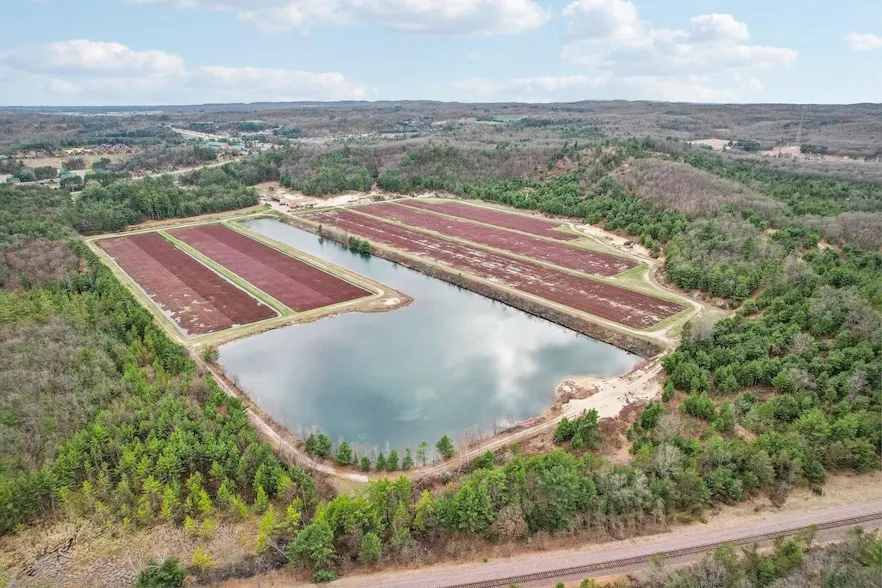 63 acre Prime Development Opportunity-Monroe County. Just off of I94, across from Three Bears Resort and adjacent to a County Forest. Currently a cranberry bog with commercial buildings, high capacity well, 9 acre pond and a residence on a 5 acre lot. Possible future uses include subdivision, golf course, water park, vineyard, outdoor adventures, hotel or casino. The property has also been reviewed as a Frac Sand Pit with a proposed reclamation plan.