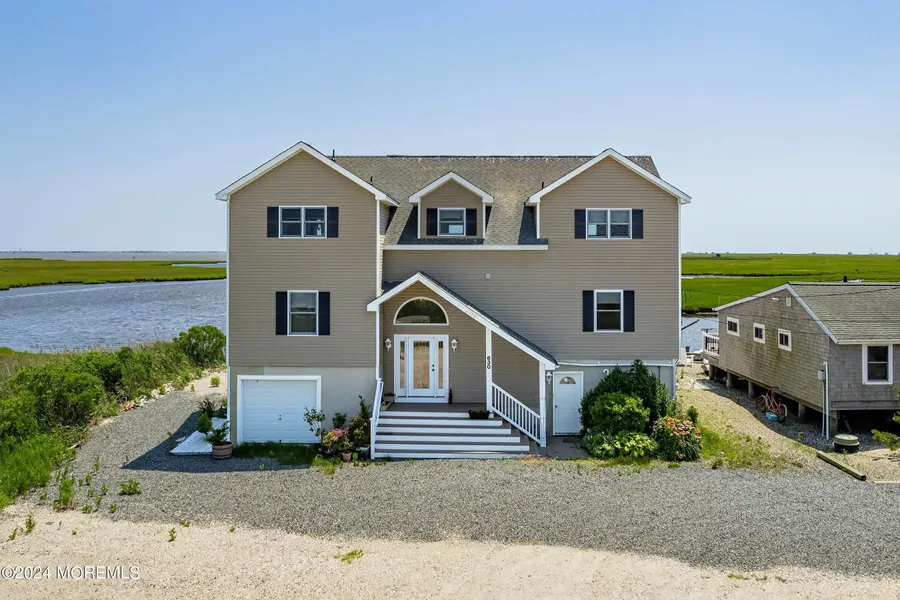 This home with a million-dollar view needs your loving touch! The Eagleswood Township waterfront home offers views from Atlantic City to Long Beach Island and direct water access to Little Egg Harbor Inlet-perfect for boaters, fishermen, and windsurfers. Nestled beside the Forsythe Wildlife Refuge, it provides a peaceful retreat with unmatched bay views. While the home needs updating, its reverse living layout is designed to capture the scenery. The lower level features a primary suite with a sitting area, walk-in closet, full bath, and two additional bedrooms sharing a Jack-and-Jill bathroom. Upstairs, you'll find an eat-in kitchen, dining area, spacious living room, office space, a laundry room, and a full bath. Sliding glass doors open to a deck with panoramic water views. Outdoor amenities include a newer vinyl bulkhead and a floating dock. The large lot has space for multiple vehicles and boat storage. The ground level offers a one-car garage, workshop, and ample storage. This is a rare chance to create your dream home in a spectacular waterfront setting, ensuring a relaxed living experience.