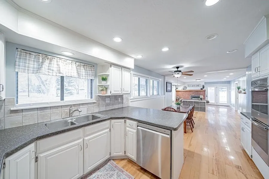 Stunning Single-Level Home on Corner Lot on a spacious .90-acre corner lot. BEST VIEWS of the Blackfoot fireworks! This beautifully maintained property offers the perfect blend of comfort, functionality, and charm. Key Features - 6 Bedrooms & 3 Full Bathroom, Two bedrooms with private en-suite baths. Open Concept Living - Kitchen flows seamlessly into dining and living area. Cozy gas fireplace for gatherings. Outdoor Living Space- Multiple entrances to back patios. Fenced side patio for privacy. Bright & Inviting Kitchen- White cabinetry, hardwood floors, and kitchen appliances included. Primary Suite Retreat- Elegant arched walk-through with shelving. Spacious bath with double sinks and abundant storage. Modern Comforts- 2 furnaces, 2 A/Cs, 2 water heaters and water softener. Home has fiber!! Mature landscaping. Sprinkler system fed by private well. Corner lot offering privacy and space. This lot is allowed medium density housing if you wanted to add more dwellings- contact p and z for details. This home has been lovingly cared for and is truly move-in ready. With its generous layout, natural light, and inviting spaces, it’s perfect for both relaxing and entertaining. Don’t miss this incredible property!!