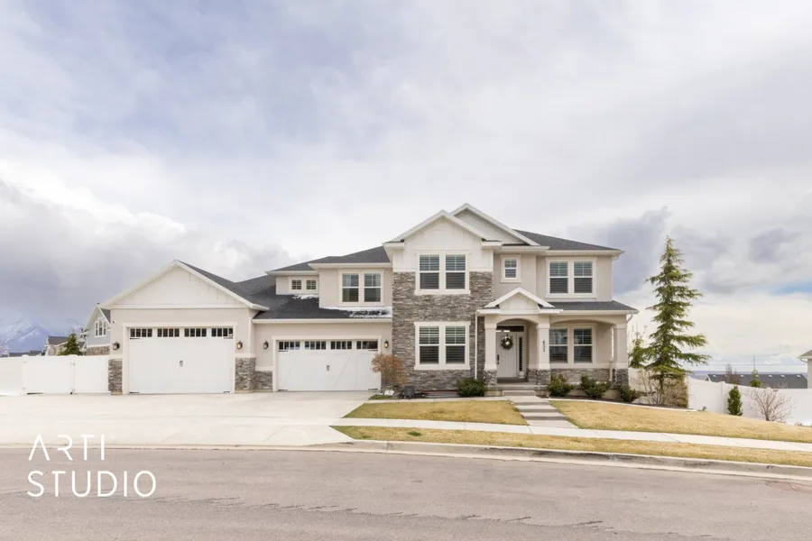 This home has everything you can dream of! The best view in the valley, endless garage space, a huge yard, a gym room, a fully finished basement, a home office shed, luxury kitchen and so much more! With a massive driveway leading to the 1,400 sqft garage equipped with two double doors and a vast 36ft depth, you'll have ample space for your vehicles and toys. The garage even has a ceiling-mounted heater for year-round comfort and a separate room to hide clutter! As you step inside, you'll be greeted by a large open-concept living room and kitchen with high-end Thermadoor appliances. The homes inviting layout offers six spacious bedrooms, plus two bonus rooms on the main floor which are currently setup as an office and a homework room for kids. Upstairs you will find 3 spacious bedrooms (one even featuring its own walk-in closet) in addition to the primary bedroom. The primary suite features its own deck, tray ceilings, euro shower, a second washer/dryer, and a massive walk-in closet. The thoughtfully designed basement features 9ft ceilings, a full kitchen, movie projector setup, gym room, safe room, and guest bedroom. Outside, you'll discover a charming shed transformed into a cozy home office, complete with drywall, heat, A/C, and 220V power, providing the ultimate work-from-home setting. Come see, and enjoy all this home has to offer!