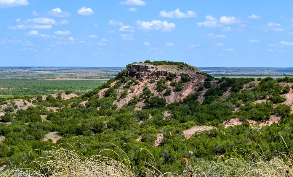 The ranch is located both on top and just off the Caprock Escarpment. The topography on the ranch is Caprock canyons flowing east into rolling mesquite bottoms. Elevations start on top at 2932 ft. dropping to approximately 2750 ft. The ranch drains from West to East along the Caprock. The brush on the ranch is considered dense closer to the Caprock. The tree species consists of Juniper (Cedar), Mesquite, and Hackberry, with Willow trees around the stock tanks.