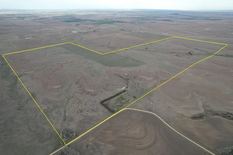 Expand your ranch for the 2024 grazing season. 634 acres +/- consisting of 564 acres +/- of pasture with 70 acres +/- of tillable. Two grazing paddocks and a 3 acre +/- trap make for simple rotating. Several south facing slopes provide livestock a break from summer heat when the southern summer breeze comes up. Hilltops have good soil growing healthy native grass as well as brome in several low spots. Draws collect good water and feed 3 stock ponds that sustain water needs in years of normal rainfall. Property does feature a well not currently in use, in addition to rural water service. Blacktop access from both paddocks and gravel road access on the southern end of the pasture. 70 +/- acres of tillable adjoins the pasture. The access point on the tillable is from the county blacktop running along the northern edge of the property. This gently rolling field is approximately 66% Class II Harney silt loam. Did I mention you could be utilizing this property this year?!