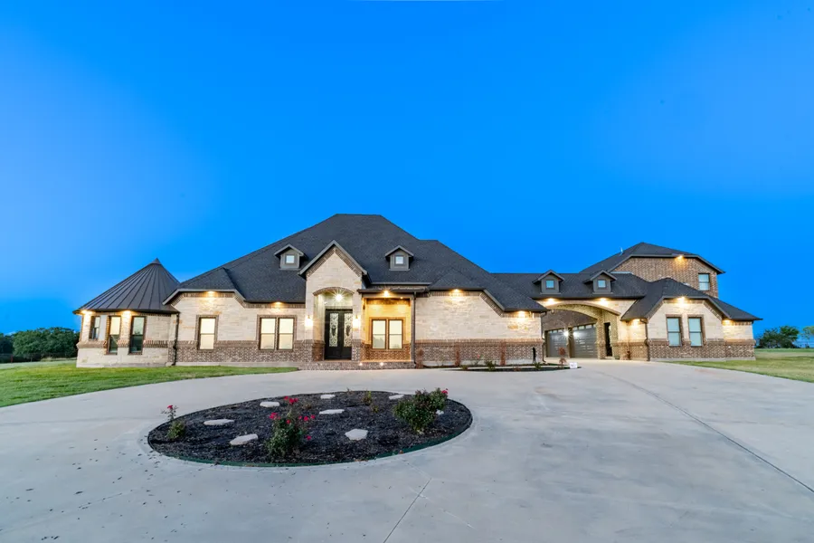 Serene and tranquil,this luxury custom home offers privacy and space in a premier Royse City location with meticulous attention to detail.Located in the exemplary Caddo Mills school district with close proximity to the major metro area's throughout DFW.Newer construction home with open floor plan ,exuding natural light,large rooms and spaces,gorgeous open kitchen with commercial grade monogram double oven stove,farmhouse sink,custom cabinetry and large walk in pantry.Stunning drive up with circular driveway beautiful grounds.Indoor home features include hand scrapped light grey hardwoods,decorative lighting,detailed ceiling moldings in living, custom wrought iron front-back doors, soaring cathedral ceiling covered patio with outdoor grill and full bath,peaceful setting off the back of home.Primary suite with steam shower and jetted tub,custom walk in closet.Powder bath,office,wet bar,game room with private balcony and 3 additional bedrooms make this the perfect family property.