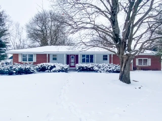 Longing for quiet small town living? This solid brick ranch features 2 bedrooms, with a possible 3rd nonconforming in the lower level) and 1 3/4 baths on a large corner lot. A spacious eat-in kitchen and formal dining room, plus a large living room with wood burning fireplace are perfect for entertaining. The lower level has a huge family/rec room, with 2nd wood burning fireplace, for even more entertaining space. A convenient main level laundry room is located directly off the kitchen. This is a solidly built home but still needs a little TLC. A $5000 FLOORING ALLOWANCE WILL BE PAID TO THE BUYER AT CLOSING. A double attached garage and extra storage building, offer wonderful storage possibilities.