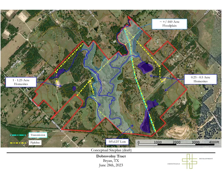 Located Hwy 21 West between Pleasant Hill Road and Smetana Rd., this beautiful 635.13 acres. See tracts location and size. Located in Northwest Bryan, Texas, in the heart of the Texas Triangle and adjacent to the new Texas A&M RELLIS Campus Growth Corridor, the tract is projected to be a middle to high income master planned community. The proposed growth corridor will include a new parkway, a research and development district, high density housing, normal density housing, and retail services with a specific focus by the City of Bryan to maintain good landscaping and architectural practices. A purchase, entitlement, and phased development approach would enable development to naturally mimic the growth and density needs of the new corridor and most likely allow for significant appreciate of the tract's value. In addition,