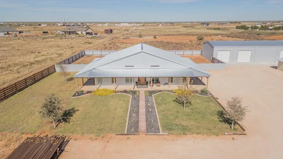 Farmhouse style home situated on 1.78 acres. Features 3 bed 2 bath high ceilings throughout & boasting with charm & character. New roof on home & shop. The home is complete with 2 HVAC units, cement floors & counter tops. Home is currently on water well but Gardendale water is available. Property has a metal fence, iron pipe fence in front, caliche drive, well house. Enjoy your morning and evenings on the wrap around porch. Let's not forget the 60 x 80 shop!! This home has it all!!