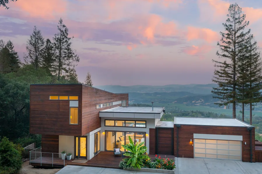 This chic contemporary 4BR/4BA home is strategically positioned atop a quiet ridgeline above W. Dry Creek Road overlooking jaw-dropping views of the famed Dry Creek Valley. Sleek modern aesthetics of simple geometry have been thoughtfully designed to create comfortable and purposeful spaces, while towering ceilings and walls of glass open broadly uniting indoor-outdoor transitions.