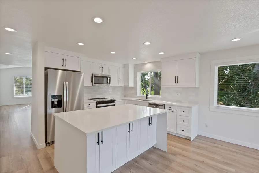 Discover refined multi-generational living in this fully remodeled home on a premier .40-acre corner lot. Best deal at just $347 per sq foot! Both levels of this home can be entered with zero steps. Thoughtfully designed with two full kitchens and two garages, this residence offers versatility and elegance throughout. The private lower level features its own entrance, garage/storage area, 3 bedrooms, 2 baths, kitchen, laundry rm, and patio area--perfect for extended family or guests. Septic was cleaned/pumped/inspected in Oct 2024 (concrete tank!), there is a newer roof, and new upper deck ensuring comfort and peace of mind. With space for an RV or boat and expansive outdoor parking, this home blends function with sophistication. Ideally located near Costco, shopping, and all of Bend's finest amenities, it is truly a rare find. Book your showing today! Mortgage savings may be available for buyers of this listing.