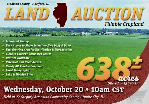 Industrial Zoning Easy Access to Major Interstate Hwy I-255 and I-270 Fast Growing Area for Distribution and Warehousing Close to Gateway Commerce Center Utilities Available Potential Rail Road Access Nearly All Tillable Cropland Level Topography Lake and Wooded Sites