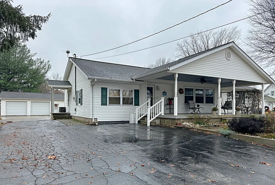Welcome home to this beautifully maintained property offering comfort, character, and incredible outdoor amenities. This spacious 3 bedroom, 2 bath home features a warm and inviting living room complete with custom built-in white cabinetry and shelving—perfect for displaying books, décor, or collectibles. The Master bedroom includes a skylight that brings in wonderful natural light and sliding doors that open directly onto the covered back porch. With ceiling fans and room to relax, this outdoor space is ideal for morning coffee or evening gatherings. A second bedroom also features built-in cabinetry, providing extra storage and charm. A bonus room offers flexibility for an office, hobby space, or extra guest room. You’ll love the large great room, highlighted by a vaulted ceiling and skylight, creating a bright and airy atmosphere perfect for entertaining or everyday living. The kitchen offers plenty of workspace and flows easily into the rest of the home. Outside, enjoy summer fun in the beautiful in-ground pool, surrounded by a clean white vinyl privacy fence—your own private retreat! The property also includes a 2-car detached garage with electricity, great for parking, storage, or workshop needs. Relax on the charming covered front porch and take in the recently updated professional landscaping that enhances the home’s curb appeal.