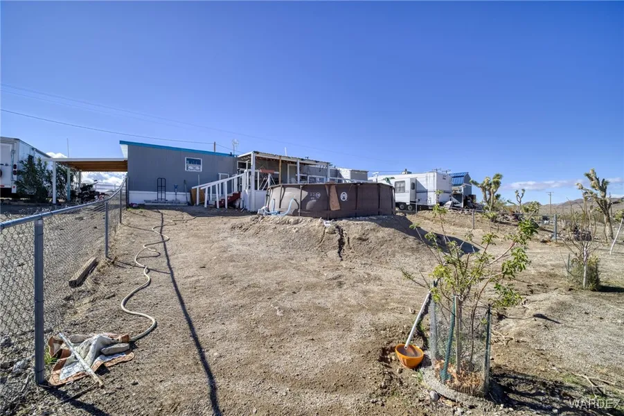 Welcome to 6385 W Fifteenth St, a charming property in the established town of Dolan Springs, Arizona. Situated on a spacious 1.16-acre corner lot, this turnkey property features dual entry points, a cozy 832 sq foot 1988 Flamingo single-wide, custom front fencing, a covered carport/patio, 2 RV parking spots with full hookups and a Tiny House with a loft stocked with materials for a potential guest quarters conversion. Inside, you'll find a fully furnished open floor plan with 2 bedrooms, 1 bath, a sunroom, a smart-space laundry set-up and efficient heating/cooling wall units. The backyard showcases a private fenced-in area, a raised patio deck with a utility shed, an above-ground pool and ample space for entertainment/development opportunities. Located in the Lake Mohave Ranchos subdivision, this property offers both seclusion and convenience. The town of Dolan Springs provides all your local essentials including shopping, dining, gas stations, postal services and more! Just 8 miles from US Hwy 93 offers easy access to all major cities. The Grand Canyon West Rim is only 40 miles away, while Las Vegas and Bullhead/Laughlin are just over 70 miles from your doorstep!
