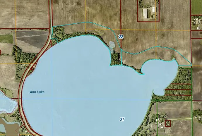 Property Information: A unique opportunity to purchase lakefront property on Lake Ann. This property is the only remaining buildable property on the lake! The property features mature tree groves, an existing building site with storage shed on the site. Most of the property has potential for development and would be easily divided into lots. The farm is currently being utilized as tillable land.