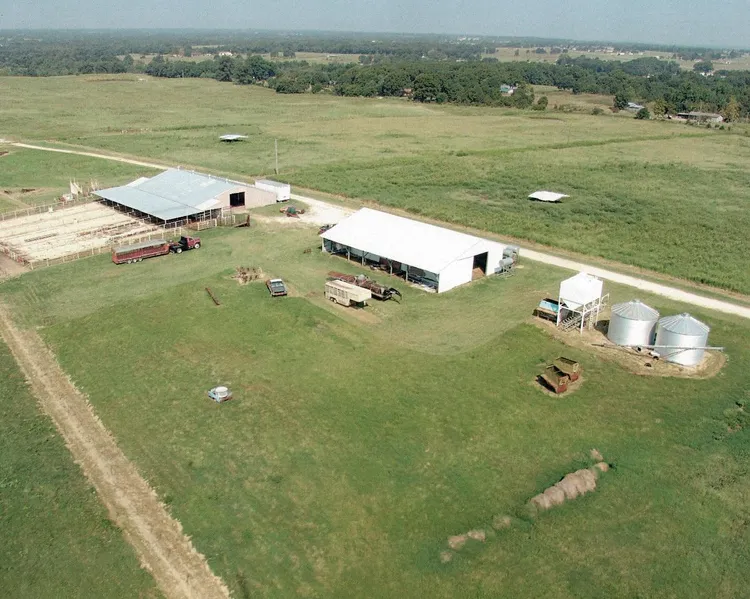 90x42 ft. cattle barn, concrete floor, 5 covered pens, cattle squeeze chute and 2 loading chutes.