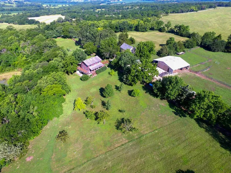 Past the large paddock areas opens into 15 acres of electric fenced meadows with above average stands of Native Bluestem Grasses. On east is an additional 45 acres of beautiful native prairie grasses with blend of legumes. This native grass mix year after year yields 1,500+ lb large bails providing additional income. 92 acres of established timber wrap the meadows. Black Walnut, American Oak, Hackberry, mulberry, Osage Orange hedge trees throughout, nice elevation changes that have created flowing draws and trail systems for wildlife make this a perfect place to bow hunt.