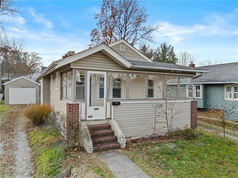 Step into homeownership with this charming Akron/Ellet bungalow-an ideal alternative to renting and a smart start toward building your future! This bright and inviting 2-bedroom home sits on a quiet residential street and offers a comfortable layout with great updates throughout. Enjoy a stylish kitchen with tile flooring and all appliances included. The dining room opens seamlessly into the living room, both featuring newer vinyl flooring, with an additional bedroom upgraded as well. A spacious enclosed front porch offers extra living space and is perfect for relaxing year-round. The updated bathroom showcases attractive tile flooring, and ceiling fans throughout the home help maintain an open, breezy feel-paired with central air for those warmer days. Outside, you'll love the large deck overlooking a private fenced backyard complete with a fire pit-ideal for entertaining or unwinding. Storage is plentiful with options on the main level plus a full basement. Move-in ready and easy to make your own-don't miss this one! Contact your agent today to schedule a showing.