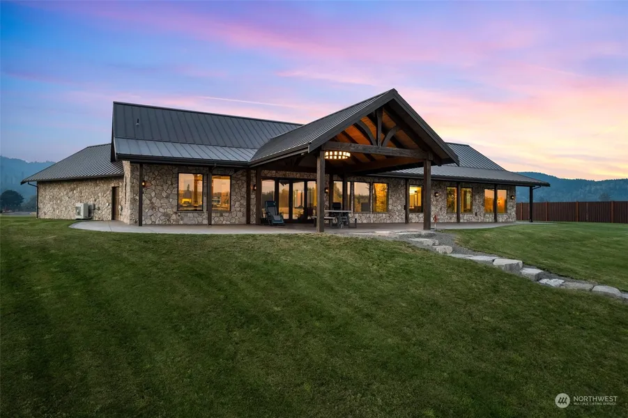 Nestled in the heart of nature’s beauty, this exquisite property is the essence of waterfront living w/ Mt Rainer views, breathtaking sunsets & plenty of privacy. Situated on 7+/- acres, this custom-built rambler boasts an open concept design, high-end finishes throughout, heated concrete floors, chef’s kitchen, spacious primary bedroom w/ massive en-suite, and covered patio that overlooks the lake w/ private dock. Ample room awaits your animals and recreational toys, including a sprawling 4500sq ft shop, gated entry, fenced pastures, garden area & RV parking. This luxury lifestyle property is lake living at its finest, offering fishing, kayaking, boating & all just 10 minutes from town. Valley Lake is a 110-acre lake w/ no public access.